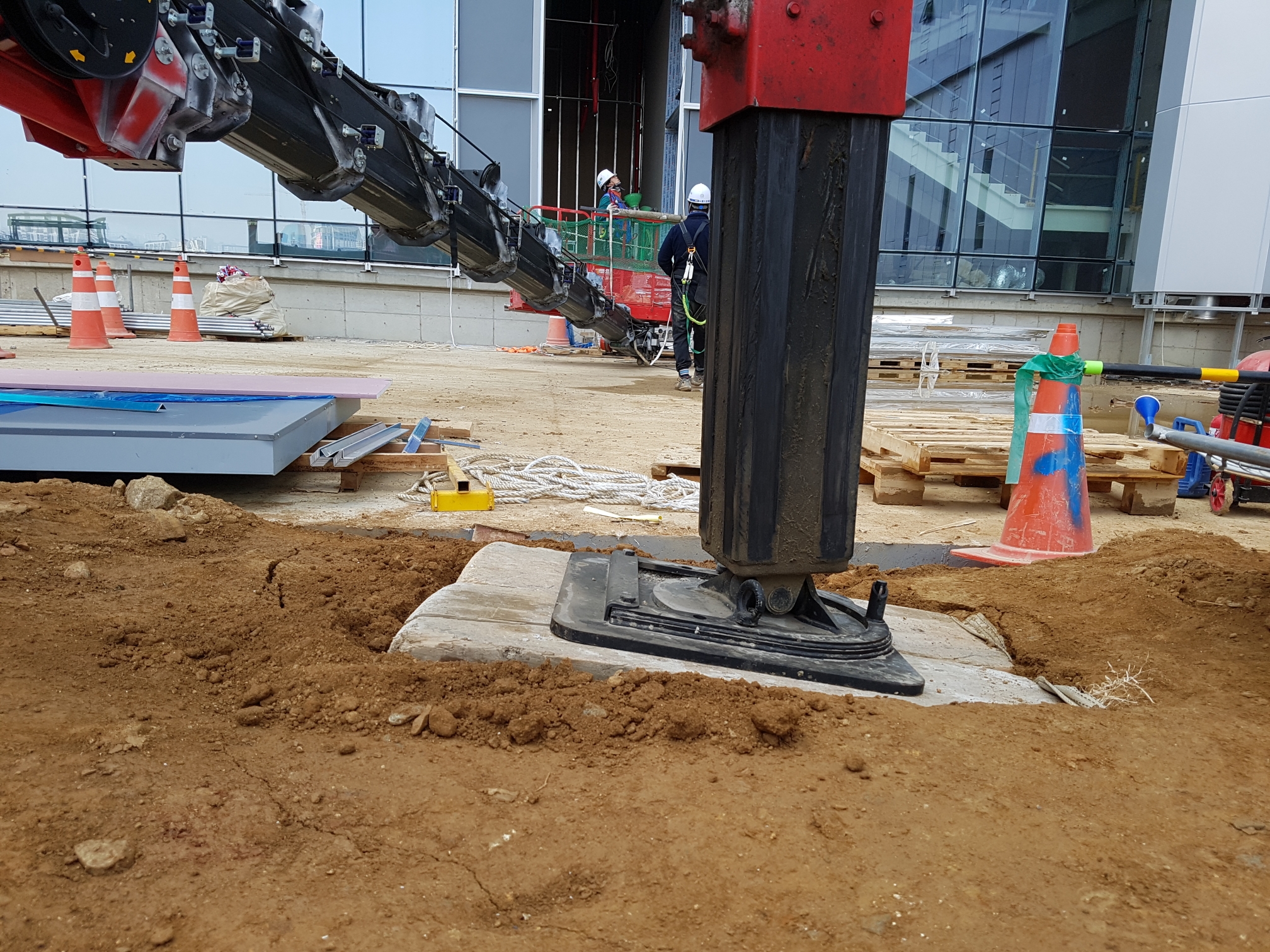 아마 4개 아웃트리거 지반이 경사져서 높이를 맞추기 위해서 높였을 거예요.